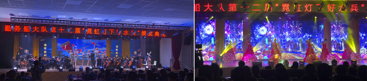 作为这座大都市中的一员,勤务船大队驻泊在浦东江心沙路,与浦西隔江想望。全部官兵在置身于改革开放的霓虹灯下,在感受上海、服务上海的同时,也借助上海优势,努力践行三个代表,不断提升部队战斗力,部队连续被上级评为先进单位,并被人们誉为霓虹灯下好水兵。这次上海古权电子科技有限公司很荣幸能为部队的多功能厅提供灯光舞美视频设备施工安装等服务,并在勤务船大队第十二届“霓虹灯下好水兵”颁奖典礼上提供现场的音视频技术服务。今后,我们将再接再厉,携手共进,给广大客户提供完美的音视频盛宴!