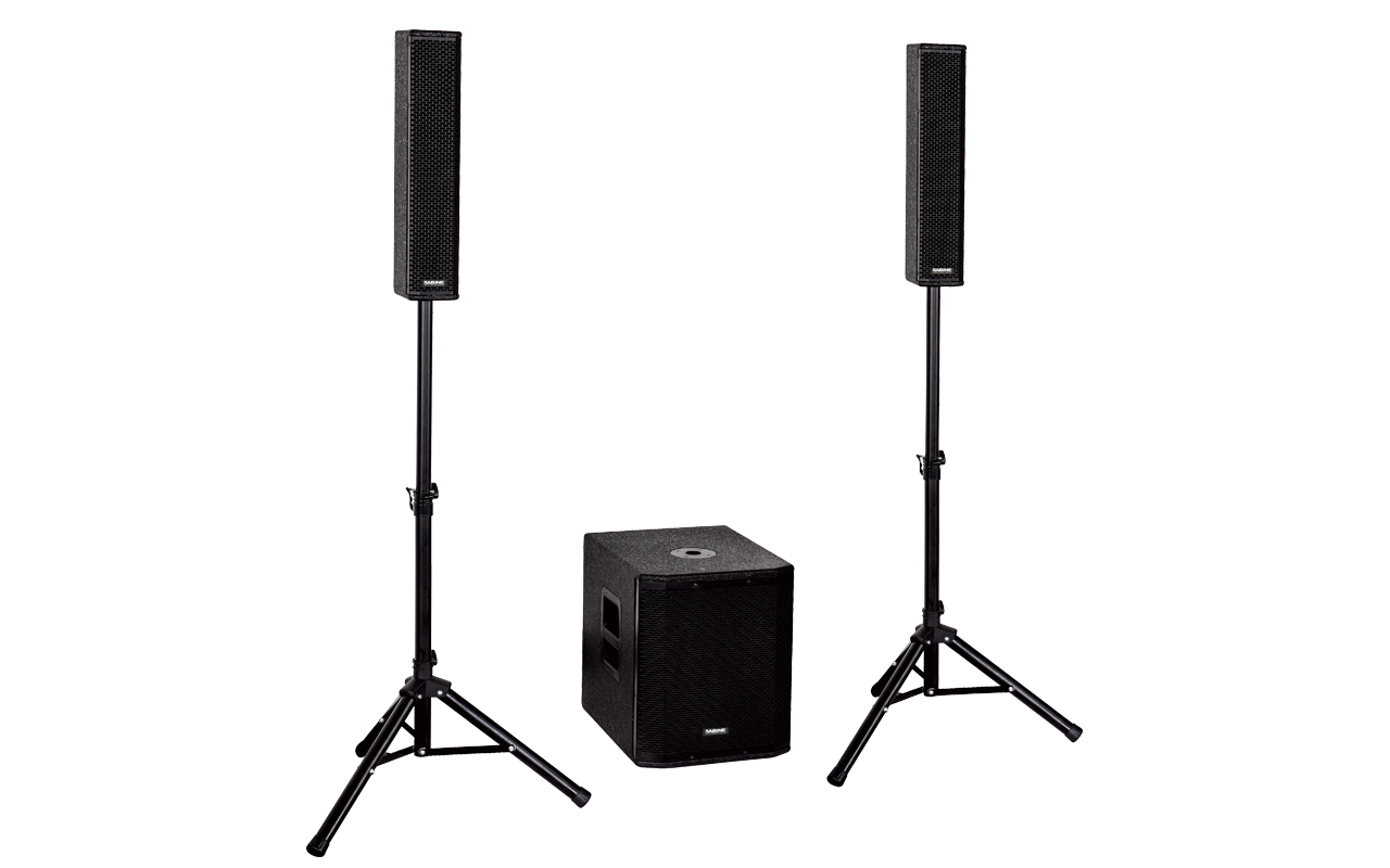一对4 x 4”的有源C100H音柱全频搭配一只单12”的有源C100B能够满足100-150平方米的室内应用方案。在台口两侧各布置一只C100H,保证场内全频信号的均匀覆盖,与之搭配的C100B体积小巧,能量大,可根据场地情况灵活布置,以实现低频下潜信号的表达。适用于会议室,多功能厅,宣讲会等场合。系统组建简单灵活,可实现流动卫星系统安装,也可实现长期固定安装使用。