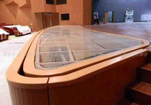升降乐池设置在舞台前沿部,为舞台专用升降设备之一。它可以由不同高度变化,形成各种使用形式。对于大型剧院建议升降乐池分成前后两块。当升到舞台台面高度时,使舞台的前沿部扩展,增大舞台表演区,当下降到与观众席前排地面高度时,可用于增加观众席前区座位,当下降一定高度时,可形成不同深度地乐池,如果降到台仓处,可运送座椅车台。