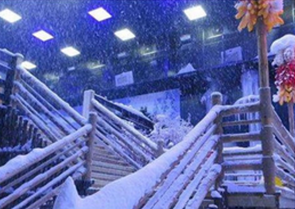 使人感觉到下雪的真实性,飘雪原理及方式和滑雪场使用的室外人工造雪机不同,从室内顶部飘雪,使人感觉到从天上下雪的真实性。