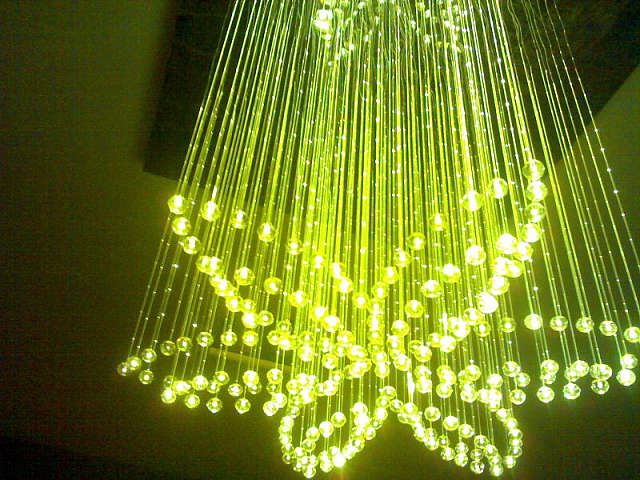 光纤灯是以特殊高分子化合物做为芯材,以高强度透明阻燃工程塑料为外皮,可以保证在相当长的时间内不会发生断裂,变形等质量问题,寿命至少10年。由于采用了高纯度芯材,从而有效地降低了光线传输中的衰减,达到了光线的高效传输,因其具有高纯度,低衰减,安装方便。可靠性、安全性、环保性、灵活性、完整性、能产生五颜六色,如梦如幻的视觉效果及无紫外线、低热量、无电伤害、使用寿命长、色彩变幻丰富、良好的耐久性和可塑性等特点。所以被视为是一种替代现行装饰照明手段的理想材料。