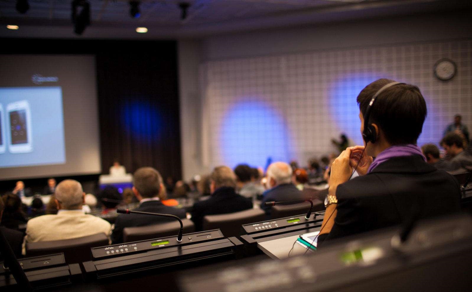 同声传译会议是指在会议期间使用同声传译、没有这一方式的参与无法进行的会议。通常为国际高端会议。